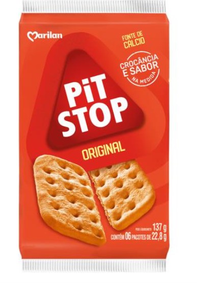 O biscoito Pit Stop Marilan apresenta alta qualidade e crocância, além de ser leve e apresentar sabor que agrada a todos. Similar ao biscoito água e sal ou cream cracker, é um produto com ótima aceitação no mercado, excelente custo-benefício e qualidade Marilan Alimentos. Ideal para servir em coffee breaks, cafés da manhă, quartos de hotel, clínicas e consultórios. Vem embalado um a um, o que mantém a crocância além de ser econômico e prático. Apresenta uma embalagem moderna e atrativa.